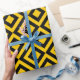 Reminiscent of hazard tape, alternating yellow and black chevrons (V shapes) converge in this bold geometric pattern designed from scratch.