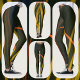 These striking attention catching leggings of yellow and black abstract with a shock of orange is vibrant and edgy. This image is original photography by JLW_PHOTOGRAPHY.