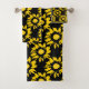 Yellow and Black Sunflower Pattern Bath Towel Set