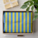 Yellow and Blue horizontal Stripes lines seamless repeat Pattern Design Background Print