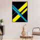 A powerful geometric composition featuring a monumental “X” in vibrant yellow and cyan. Flat, clean, and Bauhaus-inspired, this artwork delivers bold contrast and iconic geometry, ideal for striking contemporary spaces.
