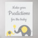 Display our yellow and gray elephant themed predictions for baby sign to make sure your guests know to leave their predictions for the new baby. Be sure to look for our coordinating predictions cards sold separately.
