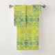 This bath towel set features a unique abstract design in shades of yellow and green. It pairs well with the Yellow Wildflower print offered by Home Life Styles to complete a pulled together look for your home. Easily personalise this set with your own initial. If you need help please contact me at leahshomelifestyles@gmail.com We hope you will choose this set to brighten up your bathroom.