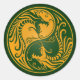 Yellow and Green Yin Yang Dragons Classic Round Sticker