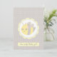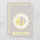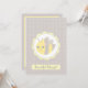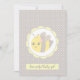 The cutest little yellow and grey striped, kawaii style, baby bee is on a grey background with white polka dots. The little bee is sitting inside a white frame, with light yellow petals around the outside. Below her is a sweet text that says "bee-utiful baby girl", but feel free to change it if you want something different. The backside has ample room for all of your baby shower information, and the little bee makes another appearance in the lower right hand corner.