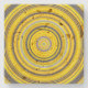 This design features a pattern made of many circles coloured with various shades of yellow and grey.