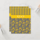 This yellow and grey flowers and stripes reply card matches the wedding invitation shown below.