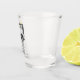 Illuminating yellow and ultimate grey two photo Save the Date shot glass. It showcases the date in yellow and grey typography in a column and two photos of the couple. The phrase "Save the Date" is in script style typography.