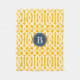 Yellow and Navy Blue Trellis Pattern Monogram Fleece Blanket