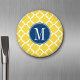 Yellow and Navy Quatrefoil Pattern Custom Monogram Magnet