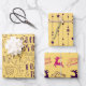 Purple and pink deer silhouettes, festive purple Christmas wishes, and strings of purple stars adorn the cheery yellow background of this modern holiday gift wrap set.