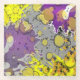 This glass coaster is a bit wild with purple splashes and yellow splash spots and there are some gold stars added for fun.