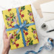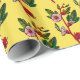 The Yellow And Red Flower Sprigs Floral wrapping paper features pink and red flower sprigs with green leaves on a yellow background