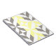 A trendy abstract, geometric cubed pattern in berry yellow and silver grey.