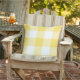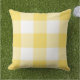 Pillow design features a casual gingham plaid / check pattern that is perfect for summertime! Note, you can customise the bright yellow background colour to coordinate with your outdoor decor.