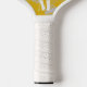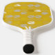 This modern pickleball paddle design features a yellow background with a white, light blue and yellow paint stamps pattern, and with your initial in bold white text for a look that is simple and stylish, yet professional.