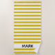 A striking striped beach towel with yellow and white stripe pattern. Personalise with your name.