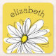 Yellow and White Whimsical Daisy with Custom Text Square Paper Coaster