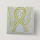 Awareness pin features the painting of a yellow awareness ribbon angel on a custom button pendant. Yellow awareness guardian angel ribbon art lapel pins or buttons can be customised with personalised messages to make great cause buttons for fundraiser pendants for cancer or other causes, awareness pin gifts, or other special pendant events or awareness lapel pin for cause's occasions.