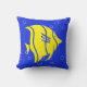 Yellow fish on Blue PILLOW on one side and Yellow and white strip on back. design by Sandy Closs. Part of the ocean themed pillow decor . Design by Sandy Closs"
