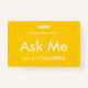 Bright yellow "Ask Me" badges for volunteers, teachers, docents, guides, event organizers for special events, such as weddings, craft fairs, home & garden shows, charitable events, business and corporate functions. The typography colour is pale ivory which gives this badge a modern look. Easy to customise!