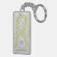 The guardian angel keychain features the art of a yellow awareness ribbon angel painting. The key chain has the word "HOPE" and space below to customise with your own personal cause name. The word "HOPE" could also be changed to "CURE". The yellow awareness angel ribbon art keychain can be customised with personalised messages to make great cause keychains for fundraisers, awareness gifts, or other special events or occasions.