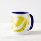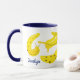 Create a personalised gift that's perfect for anyone who loves creepy crawly creatures. This mug features illustrations of banana slugs in bright cheery yellow. The graphics wrap around the mug. Their name appears in blue script lettering on both sides of this mug.