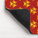 Red mousepad with a repeating biohazard symbol pattern in bright yellow and editable text field for easy customisation with your name or message.
