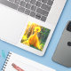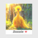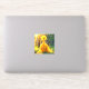 This sticker has a yellow bird pictured on it.