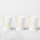Personalise these wedding party paper cups with your own couple's names and wedding date. Cute birds by a cage with spring blossom in yellow, grey, and white, other matching items are also available. © Original graphic two birds in an open birdcage drawing with graphic yellow hearts design by Sarah Trett for www.mylittledenweddings.com