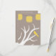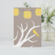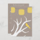 Pretty RSVP response card design is perfect for your casual or semi formal wedding. Design features the branches of a white tree silhouette. On one of the sprawling branches sits a lemon yellow bird. Above the white tree are lemon yellow paper lanterns strung up as wedding decorations. The design sits on an earth tone grey / brown background. The reverse side of the wedding RSVP response card is the same solid earth tone. There is text in white font. The text is all fully customisable to suit your wedding needs. Matching Yellow Birds In A tree and Paper Lanterns Wedding Invitations and postage stamps also available.