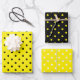Yellow Black and White Polka Dot Bee Mix Wrapping Paper Sheet