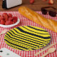 This simple paper plate design features a pattern of yellow and black coloured stripes inspired by the colouring of bumble bees. A paper plate like this might make a fun gift for somebody who enjoys beekeeping, or who likes bumble bees. It might also be useful at a party or gathering or some other event having a honey bee theme. [~Z0000315]