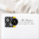 Yellow Black Damask Monogram Wedding Address Label