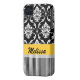 Yellow Black Damask Stripes Your Name Case-Mate iPhone Case