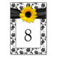 Yellow Black Damask Sunflower Ribbon Wedding Table Number