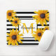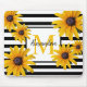 Yellow Black-Eyed Susan Monogram Black Stripe Mouse Mat