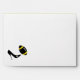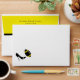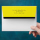 Stylish football theme envelope, done in white, with a yellow back flap, with a black stripe. A solid black lines the inside of the envelope and cute graphics of a black high heel kicking a black and yellow football, decorates the left front corner of the envelope. Return address done in black text, on the back flap, is ready to personalise with your information. Great finishing touch to our black and yellow football themed couple's wedding shower invitations.