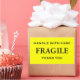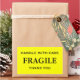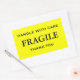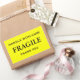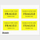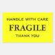 Stickers with: Fragile. Handle with Care. Thank you. Black text on a yellow background. Personalise with your information using the easy templates. Font colour, font style, font size, and yellow background colour are customisable.