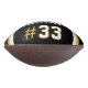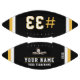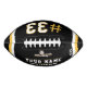 Yellow Black Name Number Team Photo Football. The text is trendy white and yellow typography on a black background with yellow and white stripes. The football includes placeholders for a player's photo, name, team name, number and year. Perfect sports keepsake for athletes and teams.