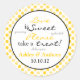 Pretty yellow and black polka dot personalised candy buffet stickers that are perfect for a wedding or bridal shower. You can personalise the names and the wedding date using personalise it. You can change any of the other text as well in the customise it section. Make sure to get the size you want with these as there are two sizes available.