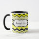 This stylish yellow, black, and white wavy striped ceramic mug is personalised with your own text. Great for lunchrooms or college dorms. You can also select other styles and sizes.