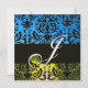 YELLOW BLUE BLACK DAMASK MONOGRAM Topaz Invitation
