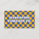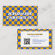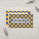 Retro-modern yellow blue chequerboard business cards featuring bold geometric patterns. Perfect for small businesses, handmade clothing brands, and professional office supplies.