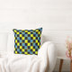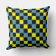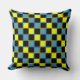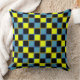 Yellow blue chequered geometric pattern cushion