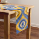 Yellow Blue Eye Art Deco Geometric Pattern Short Table Runner