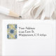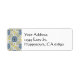 A custom address label with antique tile art with a vintage pattern in blue, white and yellow, with a handpainted feel. Customise it to choose your fonts, add your name or message, change label size or background colours, even save your design for later.