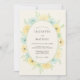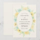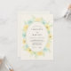 A delicate bouquet of soft yellow and muted blue blooms encircles a central area. Subtle greenery intertwines with the blossoms, creating an airy and romantic feel. This design evokes a sense of gentle celebration.