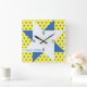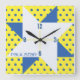 Yellow & Blue Pale Star Quilt Block Square Wall Clock
