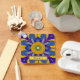 A sunny yellow and blue mosaic design with accents of green and purple, and customisable text for a name or word on the front and a longer message on the reverse side. This pretty pattern blends the timeless mosaic style of the Roman era with a Provencal palette.